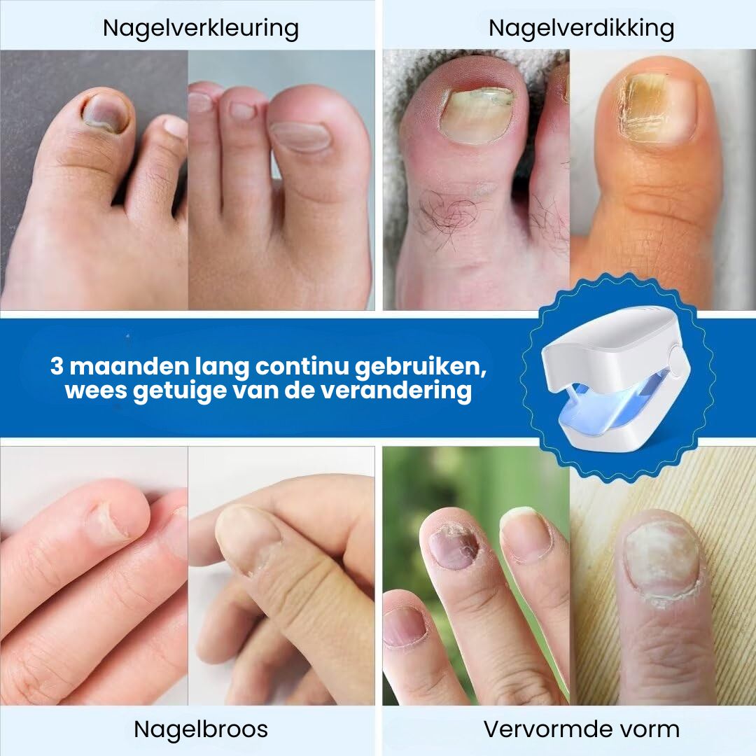 Dit innovatieve apparaat helpt betrouwbaar bij schimmelinfecties, verdikte of verkleurde nagels en een broze nagelstructuur – zonder chemicaliën, zonder bijwerkingen en zonder dure doktersbezoeken. Het ondersteunt de natuurlijke regeneratie, bevordert gezonde nagelgroei en versterkt het immuunsysteem, zodat de schimmel permanent kan verdwijnen.