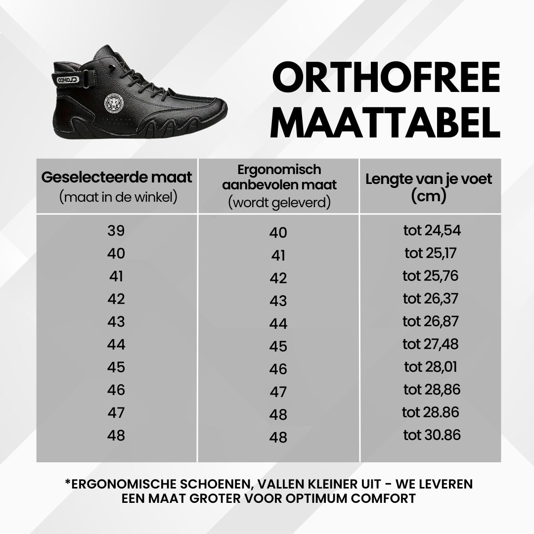 De OrthoFree schoenen zijn zorgvuldig ontworpen voor dagelijks gebruik, werk en buitenactiviteiten en bieden ongeëvenaard comfort en ondersteuning. Ze worden geprezen door orthopedie- en podologie-experts vanwege hun orthopedische constructie. De schoenen zijn ideaal om de voetgezondheid te verbeteren en pijnklachten te verlichten. Loop met vertrouwen en de zekerheid dat je avonturen en je voeten in goede handen zijn.